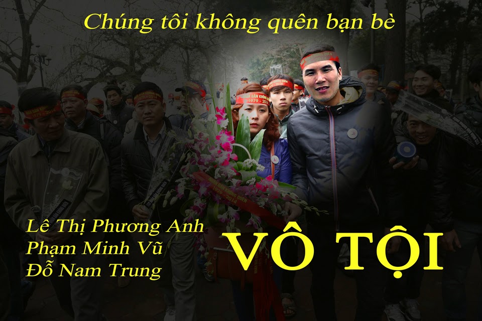 Hãy hô to khẩu hiệu "LÊ THỊ PHƯƠNG ANH, ĐỖ NAM TRUNG, PHẠM MINH VŨ VÔ TỘI!”