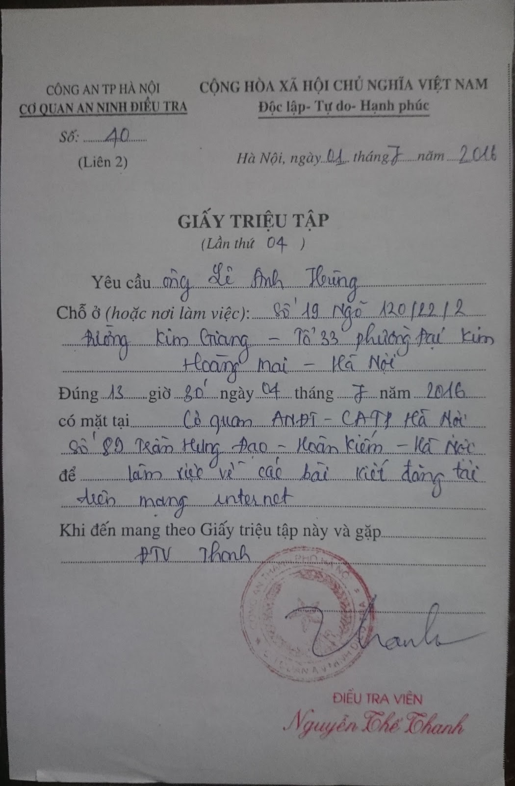 Lê Anh Hùng | VOA| 27.7.2016